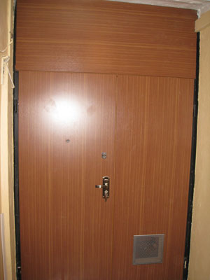 Наша компания устанавливает декоративные панели на стальные и деревянные двери. Рисунок и цвет панелей подбирается из пожеланий заказчика. Шпонированная панель--Основа изготавливается из плиты МДФ, затем на нее наклеивается шпон натурального дерева. Максимальный размер высота 2400 мм, ширина 1250мм. Панель устанавливается на двери находящиеся внутри помещения. Стоимость панели с установкой от 8500 рублей. Панель в пленке ПВХДля уличной установки. Основа панели таже плита МДФ, единственное отличее ее в том, что снаружи на панель приклеивается пленка ПВХ, которая легко переносит свое нахождение на улице, тем самым защищия основу от влаги. Максимальный размер высота 2400 мм, ширина 1250 мм. Стоимость панели с установкой от 7500 рублей. Массив из натурального дерева для отделки дверей.Панель изготавливается исключительно из массива ценных пород дерева. Толщина панели 22 мм. Максимальный размер высота 1250, ширина 2400. Устанавливается как внутри помещения, так и снаружи. Различные цвета и рисунки сделают простую дверь элегантной и дорогой. Стоимость 1 кв.м.от 11500 рублей вместе с установкой. Отделка дверей кожвиниломБолее простой и недорогой способ обновить стальную или деревянную дверь это обить ее кожвинилом. Мы использует кожвинил отечественного, индийского производства. Отделка двери с одной стороны 3000 рублей вместе с материалом. | Примеры отделок |